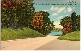 Duck Lake State Park is a public recreation area covering 728 acres (295 ha) along Lake Michigan five miles (8.0 km) southwest of Whitehall in Muskegon County, Michigan. The state park, which runs along the north side of Duck Lake to Lake Michigan, features a large sand dune.[4] The park's Scenic Drive is part of the Shoreline Trail route in Muskegon County.