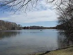 Dudley Pond was used in the mid-1800s as a stand-by water source for Boston. At the time it was connected by pipe to the nearby and much larger Lake Cochituate.[2] In the 1920s and 30s the Pond became a center for nightlife and Prohibition-breaking, with a concomitant decline in habitat and sanitation. Efforts to restore the environment beginning in the mid-century returned the Pond to a high standard of water quality.