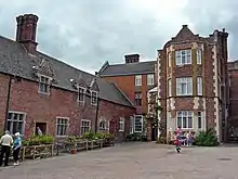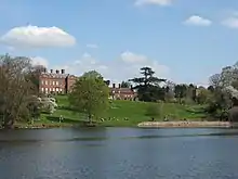 The Dudmaston estate has been in the Wolryche family or the barely related Wolryche-Whitmore family since 1403, when William Wolryche of nearby Much Wenlock acquired it by marriage to the heiress of the former owners, Margaret de Dudmaston.[1] It is likely that the medieval house was replaced by a structure on the site of the present building in the 16th century. This is shown in a stylised way on old maps as a fortified manor house. It is likely that the main source of income was sheep raising, an important part of the late medieval economy, in which the wool trade played a central role. Unlike many of the Shropshire and Staffordshire gentry, the Wolryches accepted the Reformation and became stalwart Anglicans, but were royalists, as loyal to the House of Stuart as to their Tudor predecessors.