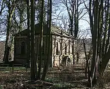 David Bryce Jr was later commissioned to provide a three-storey pavilion and corridor block, but this was damaged by a bomb in 1940 and subsequently demolished. The Earls of Fife moved out of Duff House in 1903, gifting the property to Banff Burgh in 1906.[4] Between 1911 and 1913, the House functioned as a hotel and then became a sanatorium until 1923 when it became a hotel again.[4] The hotel closed in 1928 and Duff House entered a period of limited use.[4] However, during the Second World War the House became an internment camp and later a prisoner of war camp.[4] In 1940, the House was damaged during a bombing raid resulting in eight dead and serious damage to parts of the building.[4] By 1942, the House was used by the Free Norwegian forces as their Headquarters, along with use by Polish exile forces.[2]