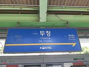 - 1 2 두정역 (in Korean). KRIC. Retrieved 2015-12-22.