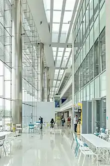 The campus is being constructed in phases, with Phase I designed by American design and architecture firm Gensler.[26] Phase 1 facilities include an academic building with a variety of classroom configurations, a 200-bed dormitory building, a conference center and hotel, a faculty residence, and an administration building. An innovation center equipped with a library, classrooms and team rooms was opened in 2019.