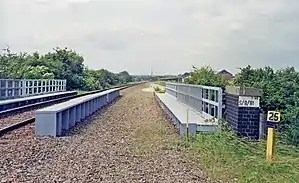 An embankment was built for a proposed west to south curve, but tracks were never laid.[25][26]