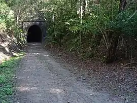 The park features the heritage-listed Dularcha railway tunnel which was built in 1891.[3] The park was initially declared so as to ensure rail passengers were provided a decent view of Queensland's forest. Use of the tunnel halted in 1932 when the line was moved to the east.[1] The tunnel now serves as a seasonal lodge for a variety of small bats, including large-footed myotis.[4] The park was extended in 2010 when Mooloolah Forest Reserve was added to the national park.[1]