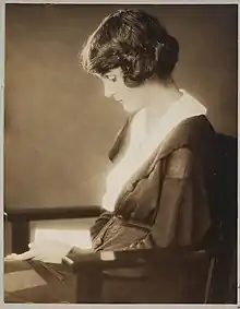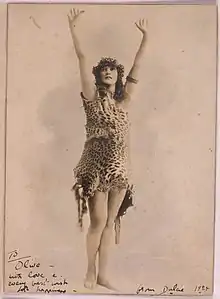 Deamer was known as the "Queen of Bohemia" due to her involvement with Norman Lindsay's literary and artistic circle, the Bohemian world of Kings Cross, Sydney, and vaudeville.[5] During the inter-war years, many balls were held in Sydney, including those known as the "Artists' Balls" which had been held as far back as the 1880s. Dulcie Deamer attended every Artists' Ball for 30 years.[6] The leopard-skin costume with dog-tooth necklace that she wore to the 1923 Artists' Ball in Sydney "has come to symbolise the joie de vivre of the decade, despite Deamer's own protest regarding its relevance."[6][7]
