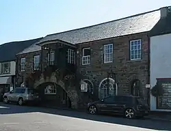 The Middle Ages saw continued growth and the establishment of fairs and markets, with several small industries based upon the traditions of upland farming and the wool trade.[4] These include related works such as laundries; originally used for the washing of sheep fleeces in the leats feeding the wide and fast-flowing River Barle, the surviving 19th-century industrial laundries[8] continue to provide a service to surrounding businesses. The market house in Fore Street, which is believed to date from 1760, was re-modelled to become Dulverton Town Hall in 1866,[4] with the porch and external double staircase being added in 1930 by Sir Albert Richardson.[9]
