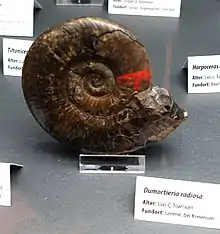 | Fossil of Dumortieria jamesoni.at Haus der Natur, Salzburg | |