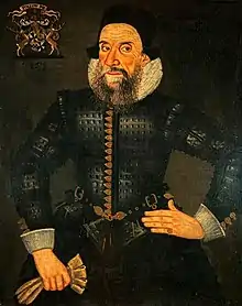 Two portraits depict Duncan Campbell. The first is dated 1601 and shows some similarities with pictures attributed to the court painter Adrian Vanson. The second portrait is dated 1619 and giving his age as 65 (the inscription has been repainted). The painting is not in the mainstream style of the Netherlandish court painters like Adrian Vanson but may be the work of the "German painter" known to have been employed by the family in 1633.[8]