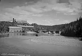 The Dunderland Line was a single track, standard gauge 23.7 km (14.7 mi) railway between Gullsmedvik and Storforshei.[1] It started at Mo i Rana Port at Gullsmedvik and ran up the Dunderland Valley until it reached Rena Mine at Storforshei, following the south shore of the river Ranaelva. After the assimilation with the Nordland Line, the sections to Gullsmedvik and Storfoshei became branch lines of the main line.[2]