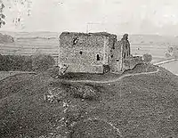 The second castle was built in the late 13th century by Alexander Stewart, 4th High Steward, this castle was predominantly built of stone. It would have been one of the grandest baronial residences of its time. It was largely destroyed by the Scottish during the Wars of Scottish Independence in the early 14th century. King Robert the Bruce's policy was to slight (demolish) most castles so they could not be used by enemies including much greater castles than Dundonald, such as Edinburgh Castle and Roxburgh Castle.[1] There is little remaining of this castle, however there is a well and a rounded stump of a tower near to the present.
