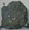 | 15476 | - | basalt | Slabby, subangular, porphyritic basalt with brown pyroxene phenocrysts to 15 mm long in a slightly vuggy groundmass of plagioclase, and brown and green mafic silicates |