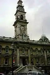 In 1939, the interior of Lawson’s building was remodelled. Lifts were installed and the exterior steps were removed and replaced with a balcony.[18] Some time before 1955, two storeys were added to the southeast corner of the 1930 extension.[19] In 1963, the top of the Municipal Chambers' tower was removed and replaced with a truncated aluminium cap, known as "the meat safe"[20] ostensibly for reasons of safety, but in fact as a prelude to demolishing the whole of Lawson’s structure.[21] This was controversial but plans to demolish the building continued to be entertained into the 1980s.