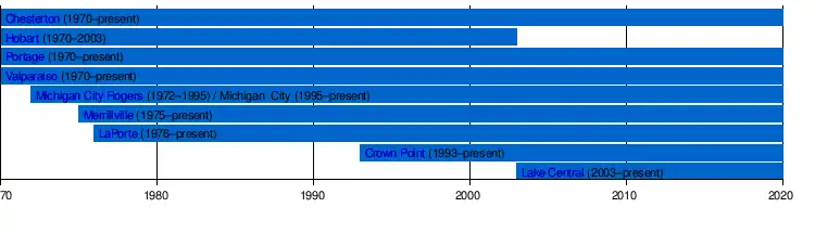 - 1970: Chesterton, Portage, Valparaiso, and Hobart High School began competition as the Duneland Athletic Conference. Chesterton & Portage had been members of the Calumet Conference; Hobart & Valparaiso had been independents.