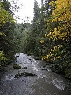 The Dungeness River is a 28-mile (45 km) long[1] river located in the Olympic Peninsula in the U.S. state of Washington. It rises near Mount Constance in the Olympic Mountains within the Olympic National Park, flows through the Buckhorn Wilderness, passes by the town of Sequim, and empties into the Strait of Juan de Fuca at Dungeness Bay, behind the Dungeness Spit.[2] One of its main tributaries is the Gray Wolf River. It is crossed by the Dungeness River Bridge.