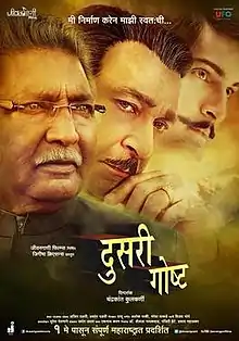 Dusari Goshta (Marathi: दुसरी गोष्ट) is a 2014 Marathi-language Indian fictional biopic film by director Chandrakant Kulkarni, based upon former Home minister Sushilkumar Shinde's life, and tracking his journey from child to adult.[1][2] Initial plans were for the film to release on 1 May 2014, to coincide with the Maharashtra Day holiday,[3] and the film was released 2 May, in 200 theaters across Maharashtra. On 9 May, the film had a special screening in New Delhi at the Rashtrapati Bhavan presidential residence for President of India Pranab Mukherjee, and then Home minister Shinde.[4]