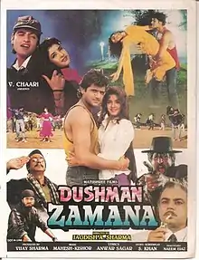 Dushman Zamana (transl. The era of enemies) is a 1992 Indian action film directed by Jagdish A. Sharma.[1] It stars Divya Bharti and Armaan Kohli in the leading roles.[2][3] This film was a moderate success in Bollywood.
