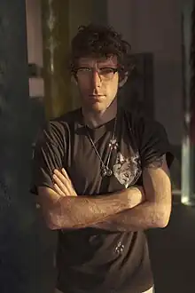 Dustin Yellin (born July 22, 1975) is an American artist living in Brooklyn, New York.[1] His work embeds "hundreds of little pictures, drawings and images clipped out of magazines, art books and the like"[2] to form tableaux in miniature, which the critic Gilda Williams, writing in Artforum, noted provides viewers "the ability to occupy a divine vantage point while enjoying an overwhelming sense of discovery and wonder".[3] These works, which the artist refers to as "Frozen Cinema",[4] have been featured at sites including New York's Lincoln Center,[5] the Kennedy Center[6] in Washington, D.C, and the Brooklyn Museum, where Yellin's work is part of the permanent collection.[7] Yellin has likewise participated in The Metropolitan Museum of Art's Artist Project.[8] According to Andrew Durbin, "Yellin has formalized the central task of art—to archive: feelings, objects, events, selves—in his large glass blocks, recalling in their extreme hermeneutical diversity (forms within forms within forms, images within images within images) both as a past in which the representation of the human form was art's most recognizable enterprise and a future in which that enterprise is deeply complicated by the fact that the human form has been shredded, reformatted, revised, and redesigned, made precarious and permeable by technological and ecological shifts."[9]