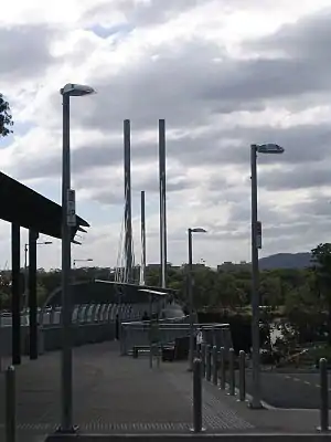 Although the Bridge was constructed in 2006, the bus stop on its eastern end at Dutton Park Place was only opened on 3 August 2009, as part of the Boggo Road Busway connecting UQ Lakes to Buranda.[3][4] Before opening, the proximity of the Dutton Park bus station construction works to the South Brisbane Cemetery was somewhat controversial,[5] prompting concern from Prime Minister Kevin Rudd.[6]