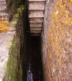 The water wheel, shown in the photographs, provided power for a sawmill.[3]
