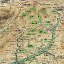 The Dyfi hills (sometimes anglicised to Dovey hills) are a range situated in the southernmost area of Snowdonia, bounded by the River Dyfi on the east and south sides, by the Afon Dulas on the west and the Afon Cerist to the north.[1] They lie to the west of the Aran Fawddwy range, north-east of the Tarren y Gesail range and are a subgroup of the Cadair Idris group.