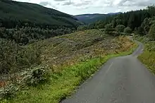The majority of the area of the Dyfi Hills was planted with forests by the Forestry Commission. Planting started in 1926, and huge areas of land were purchased between the Wars and into the 1950s and 1960s. The trees planted were mainly Sitka Spruce and Japanese Larch, though a large number of other species were also tried. The trees are regularly felled for commercial use and replanted.[3] This forested area forms the major part of the Dyfi Forest.[4][5]