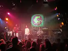 Dzeltenie Pastnieki live in 2006. From left: Viesturs Slava, Ilgvars Rišķis, Ingus Baušķenieks.