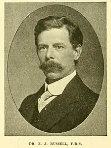 Sir Edward John Russell OBE FRS[1] (31 October 1872 – 12 July 1965) was a British soil chemist, agriculture scientist, and director of Rothamsted Experimental Station from 1912 to 1943.[2][3] He was responsible for hiring R A Fisher for statistical research at Rothamsted and driven by concerns over a lack of international information exchange about agriculture, he initiated the Imperial Agricultural Bureaux, which later became the Commonwealth Agricultural Bureaux.
