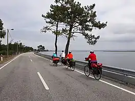In France, the EV1 is marketed as the Vélodyssée.[1] With a length of 1,210 km (750 mi) the EV1 connects Roscoff to Hendaye all along the Atlantic Coast. In Brittany, the EV1 largely follows the voie verte (greenway) along the Nantes-Brest canal, while in Aquitaine it follows the greenway along the coast of the Landes forest.