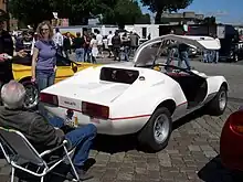 Eagle Cars' fibreglass-bodied Jeep-lookalike, the Jeep RV,[9] was built around Ford Cortina parts. There was also an Eagle RV 4X4 (Range Rover, later also Daihatsu Fourtrak/Rocky based), unusual for kit cars in that it had four-wheel drive. The RV used an X-braced ladder frame and the expected Ford engines, although the Ford Capri's 3-litre V6 and the usual Rover V8 were also possible fitments,[10] while the Eagle 4x4 was available with a whole host of different engines from Rover, Mercedes, Peugeot, or Ford.[11] Later a Ford Sierra-based two-seater, two-door convertible (also available with a hardtop) called the Milan 2 Plus.[2] This was first seen in 1988 and was co-developed with "Milan-Automobile" of Remscheid, Germany.[7] Since it accepted all Sierra underpinnings, the Milan was available with engines ranging from 1.6 to 2.8 litres and with either rear-wheel drive or all-wheel drive.[12] During the eighties, an RV Jeep Series II was developed, using more modern Ford Sierra parts.[10]