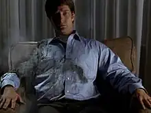 In the episode's opening scene, a man disintegrates into ash upon being touched
