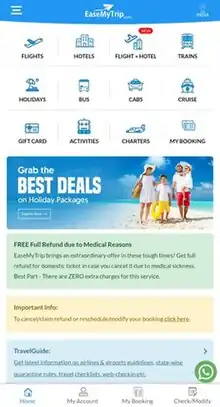 30. "Get full refund on domestic air ticket cancellations! EaseMyTrip offers free full-refund medical policy". The Financial Express. 19 July 2021. Retrieved 15 September 2021.