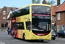 The 121, alongside the X46, received a batch of MCV EvoSeti-bodied Volvo B5TL double-deckers in 2017, which featured branding for the route.[5] Four of these were repainted and refurbished to EastRider specification for continued use on the route in 2022.