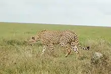 The East African cheetah (Acinonyx jubatus jubatus), is a cheetah population in East Africa.[2] It lives in grasslands and savannas of Tanzania, Kenya, Uganda and Somalia. The cheetah inhabits mainly the Serengeti ecosystem, including Maasai Mara, and the Tsavo landscape.