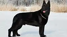 The East European Shepherd was used heavily by the military and police within the Soviet Union as a guard and sniffer dog. It was a favourite of the KGB, who only ever kept solid black examples; if a single non-black pup was born in a litter bred by the KGB the entire litter was destroyed and that breeding was not repeated.[2][3] A breed standard was approved in 1955 by the Central Committee of the USSR DOSAAF, and in 1964 by the Presidium of the Service Dog Breeding Federation.[4] The East European Shepherd is now among the most numerous dog breeds in Russia and several former Soviet countries.[3]