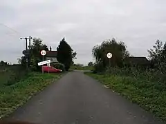 ![]() Approaching the village from the east, the bank of the Trent visible across the road junction | |