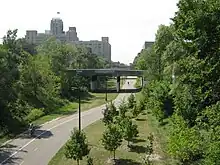Midtown Greenway looking west with the Midtown Exchange building in the background.