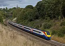Further decreases in journey times were achieved by EMT during the 2010s. One particularly impactful change was the completion of infrastructure improvements on 9 December 2013 that enabled 125 mph (200 km/h) along major stretches of the Midland Main Line for the first time.[9] To achieve this, EMT had invested £70 million into the improvement of almost 160 miles of track over the course of several years; the scheme was the route's biggest transformation in decades. The operator had worked closely with the national railway infrastructure company Network Rail on this and other initiatives to improve the route, such as a major re-signalling scheme performed in and around Nottingham station at a cost of £100 million largely performed during the summer of 2013.[8]