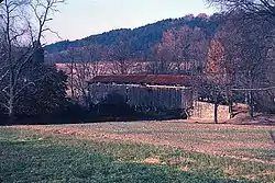 The East Oriental Covered Bridge, also known as the Sheaffer Covered Bridge, is a historic wooden covered bridge located at Perry Township near Meiserville in Snyder County, Pennsylvania and Susquehanna Township near Oriental in Juniata County, Pennsylvania. It is a 90-foot-long (27 m) Burr Truss bridge. It crosses Mahantango Creek, but is no longer in vehicle use.[2][3]