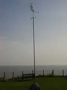 The beach at East Runton is popular with the surfing fraternity. Located on a cliff-top, the Surfers' Memorial was unveiled in 2003.[8] The weather vane is topped with a figure depicting a surfer. At the base of the memorial a plaque commemorating the lives of four young surfers is inscribed with the words Waves come & go my friends but your lights shine on .[9]
