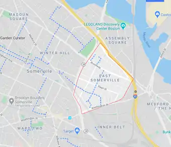 - ↑ "Meet East Somerville". eastsomervillemainstreets.org. East Somerville Main Streets 1. Archived from the original on August 21, 2013. Retrieved December 6, 2013.