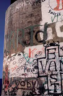 The East Van Cross traditionally was the work of graffiti artists, said to express the "marginality and defiance" of East Vancouver.[1][2]