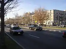 Due to its width, as well as the lack of traffic lights on some service roads, Eastern Parkway contains a number of dangerous intersections, especially at those with two-way cross streets or one-way southbound cross streets.[14]: 3 This is exacerbated by cars attempting to turn from the main road onto the side streets, who frequently block the crosswalk or make quick turns onto these streets.[14]: 6 One of the more dangerous intersections along Eastern Parkway is at Utica Avenue, a two-way street, frequently regarded as the most dangerous intersection in Brooklyn.[21][22] This was once the second-most-dangerous intersection in the city, with eighty-eight pedestrians being hurt and four being killed between 1995 and 2001.[23] Another intersection with Washington Avenue, a two-way street, formerly lacked a traffic light for the northbound service road. Between 1995 and 2005, the intersection of Eastern Parkway and Washington Avenue saw one fatality and thirty-nine injuries.[24] The segment between Grand Army Plaza and Washington Avenue was later upgraded with a traffic light and bike lane.[25][26]