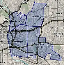 The Mapping L.A. project of the Los Angeles Times defines the Eastside as comprising Boyle Heights, El Sereno, Lincoln Heights, and East Los Angeles.[5] However, the boundaries are a matter of perennial discussion and debate among the residents of Los Angeles.[6]