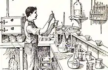 Some Eau de toilette were once considered restorative skin toners with medical benefits.[25][26][27] The journal Medical Record reported in 1905 that a toilet water spray restores energies lost in business, social, and domestic situations.[28][29] During the fourteenth through sixteenth centuries a type of toilet water called "plague waters" was supposed to drive away the bubonic plague.[30][31]