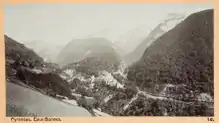 Eaux-Bonnes is close to the small town of Laruns. It is situated at a height of 2,460 feet (750 m) at the entrance of a fine gorge, overlooking the confluence of two rivers. The village's waters were first documented in the middle of the 14th century. The Eaux-Chaudes spa is 5 miles (8.0 km) south-west of Eaux-Bonnes, and there is fine mountain scenery in the neighbourhood of both places, the Pic de Ger near Eaux-Bonnes.[3]