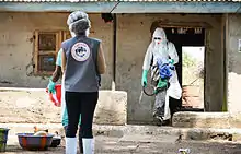 In an attempt to control the disease, Sierra Leone imposed a three-day lockdown on its population from 19 to 21 September. During this period 28,500 trained community workers and volunteers went door-to-door providing information on how to prevent infection, as well as setting up community Ebola surveillance teams.[47] The campaign was called the Ouse to Ouse Tock in Krio language.[48] There was concern the 72-hour lock-down could backfire.[49]
