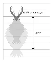 Echidnacaris briggsi is an extinct species of radiodont known from the Cambrian Stage 4 aged Emu Bay Shale of Australia. Formerly referred to as "Anomalocaris" briggsi, it was placed in the new monotypic genus Echidnacaris in 2023.[1] It is only distantly related to true Anomalocaris, and is instead placed in the family Tamisiocarididae.[2]