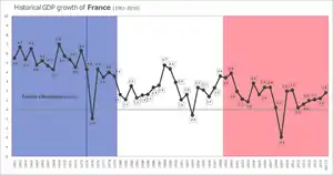 During the Trente Glorieuses, from 1947 to 1973, France experienced a booming period with an average annual growth rate of 5%. The population grew rapidly, fueled by a high birth rate and declining mortality rate. The economy's growth was driven by productivity gains and increased working hours, as well as investment in targeted industries, regions, and products through indicative planning. The government played a significant role in directing investment and supporting industries of strategic national importance.