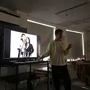 Fornieles was first recognized for his performance pieces such as Animal House (2011)[8] at the experimental space, Guest Projects in London. Animal House helped refine a method that Fornieles would repeat in his subsequent works, engaging participants and viewers in sometimes awkward situations.[9] Dorm Daze, grew out of Fornieles' interest in American fraternity culture as a large-scale on-line performance played-out on Facebook, where participants adopted profiles taken from real life American college students.[5] Fornieles work focuses on the effect of narratives, habits, and technology in the formation of social roles and personal identity. He uses performance to re-enact and distort relationships to archetypes and conventions. Each chapter of work is driven by an intense period of research centered on reinterpreting and remodeling the subject under investigation. The Dreamy Awards (2012),[10] was a fictional ceremony initiated to raise questions about the cult of the awards bash. The work was presented at the Serpentine Galleries Park Nights with the participation of over 200 people, including actor Zac Efron, in a pre-recorded video clip. Other works include, New York New York Happy Happy (NY NY HP HP) (2013) where Fornieles was invited by Rhizome to organize a gala at the New Museum.[11] The event was controversial because Fornieles scripted both actual Museum donors and actors, blurring any sense of reality. Modern Family (2014) was a sullen installation where Fornieles explored the breakdown of the family both metaphorically and literally.[12]