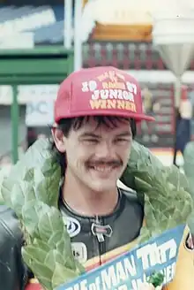![]() Eddie after winning the 1987 Junior TT | |||||||||||||||||||||||||||||||||||